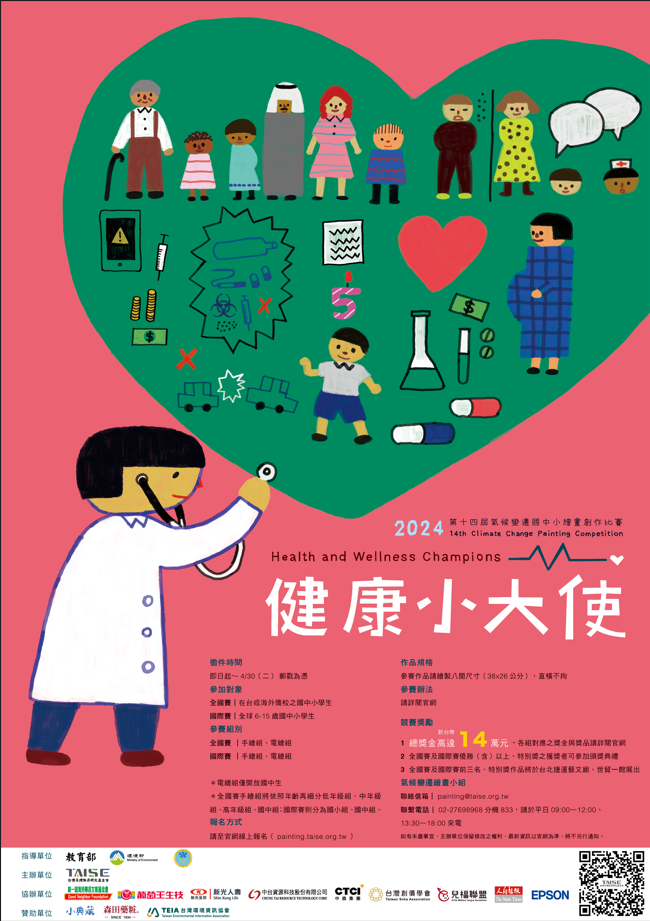 二、第14屆為呼應聯合國永續發展目標(SDGs)第3項「健康與福祉」,以「健康小大使」為主題,提升師生對傳染病的認知並共同探討如何預防傳染疾病;同時學習健康的生活方式、情緒管理等等,亦須充分了解各項子目標的內容,攜手邁向健康、平安生活。此繪畫比賽也呼應第13項,採取氣候行動並提升大眾相關意識。