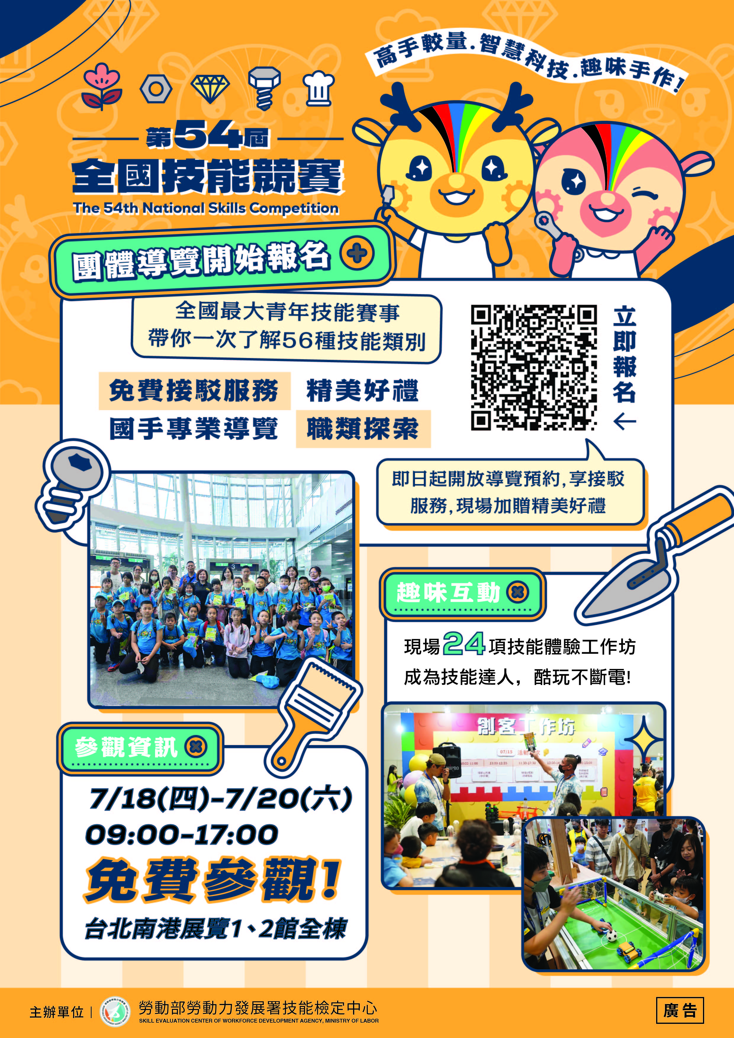 三、配合旨揭競賽活動歡迎各級學校安排學生戶外教學,師生一同蒞臨參觀,大會將提供免費導覽服務(申請網址: https://ppt.cc/fUPv3x),期能強化技能教育、提升學習意識,以達到向下紮根之目的。
