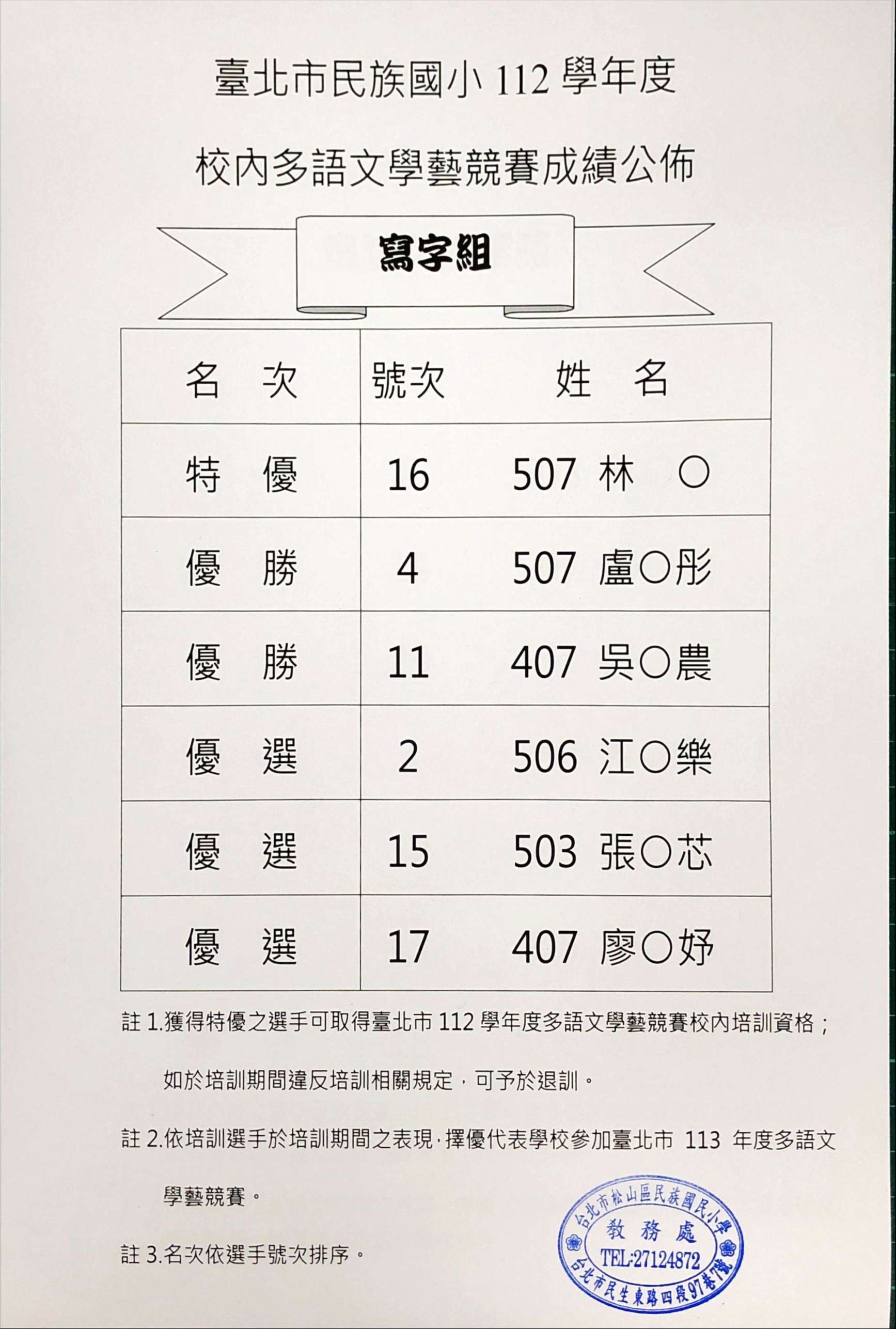 成績出爐,感謝培訓師長們及評審老師的付出與辛勞!