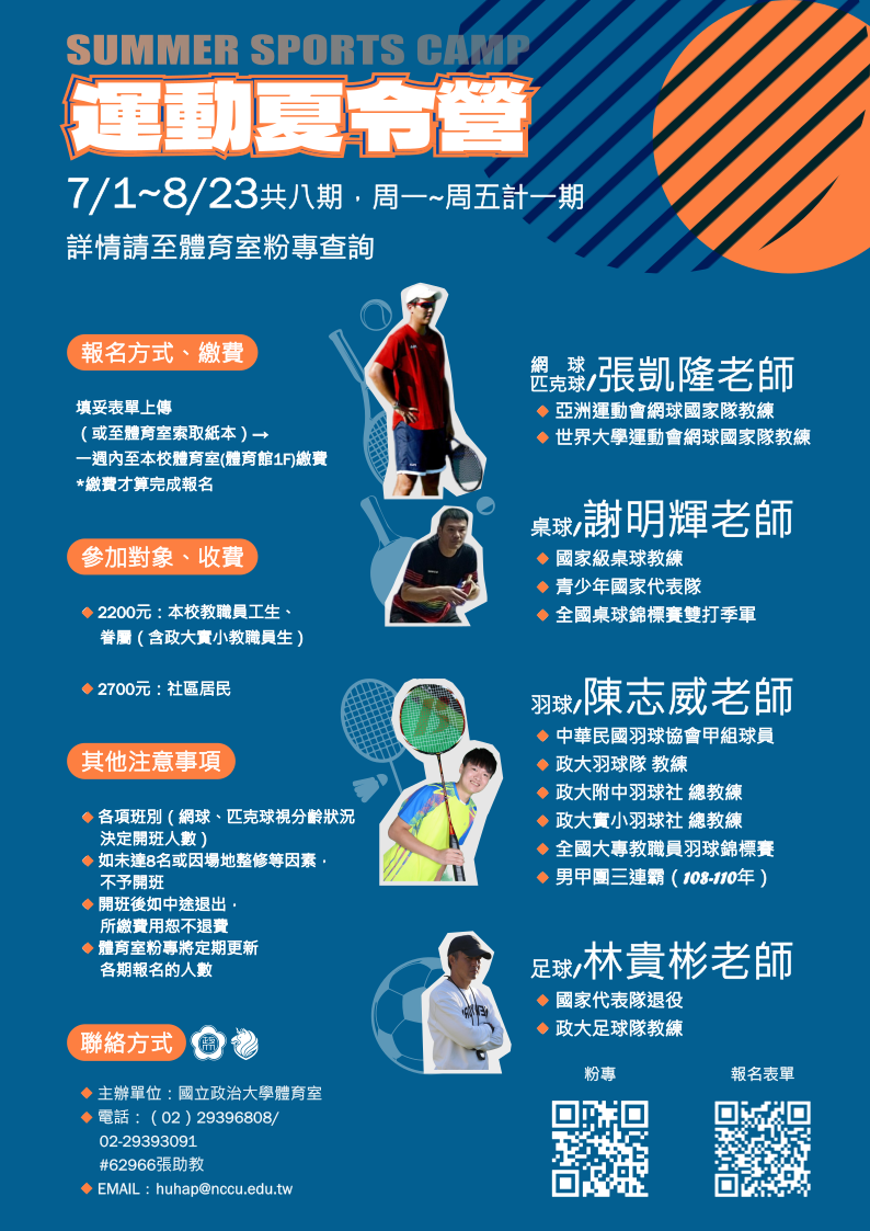 四、檢附活動簡章、報名表、海報各1份,詳情請參閱網站https://sports.nccu.edu.tw/web/news/news_in.jsp?