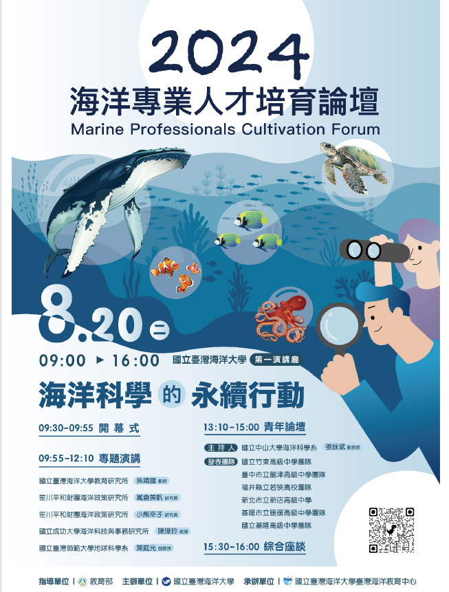 二、旨揭論壇以「海洋科學的永續行動」為主題,響應2021年 至2030年為海洋科學促進永續發展十年,希望大眾關注海 洋永續並付諸行動。活動採「專題演講」及「青年論壇」 形式進行,邀請臺日深耕海洋教育的專家學者及學校團隊 與會分享。