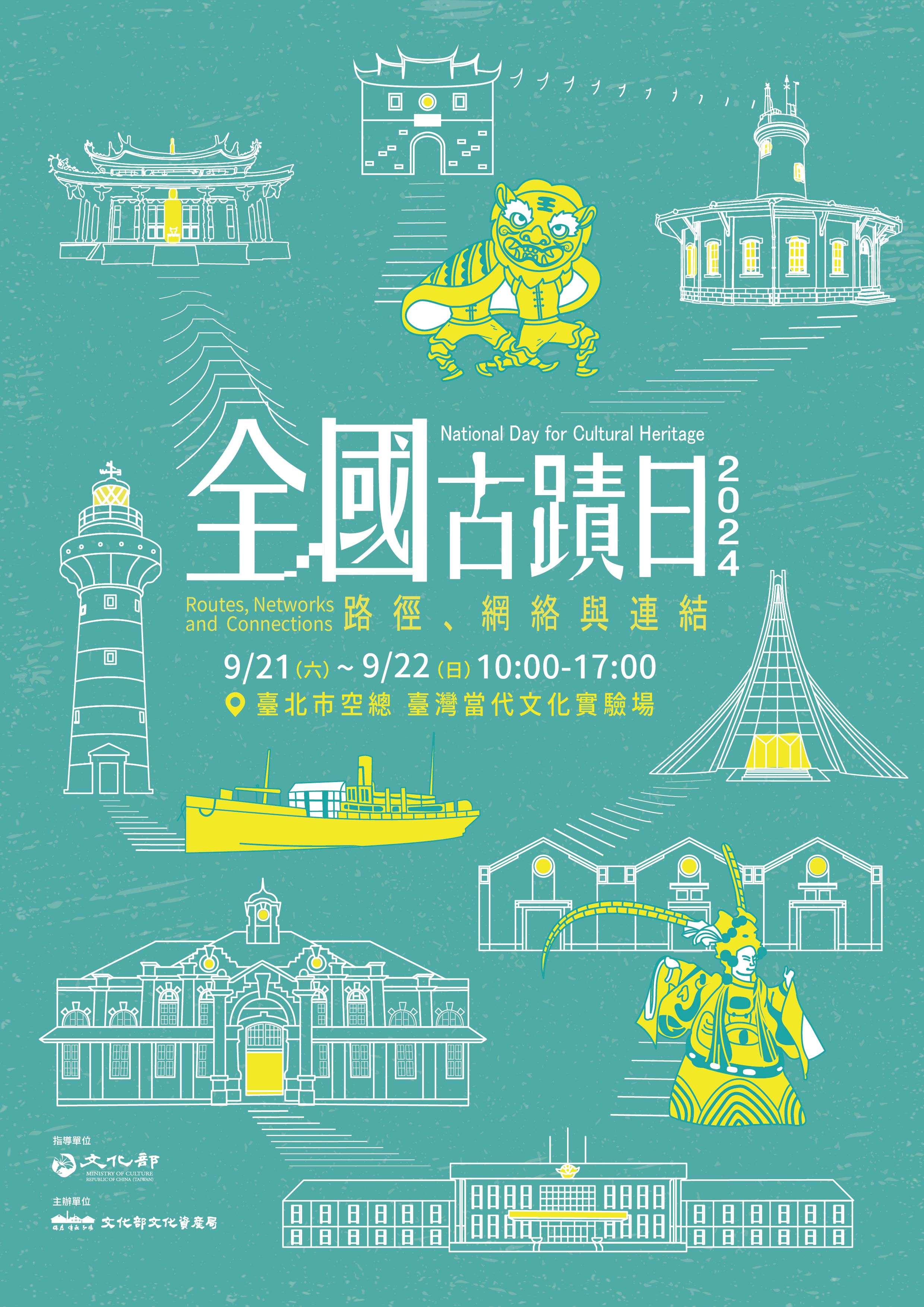 一、文化部文化資產局訂於113年9月21日(星期六)至9月22日 (星期日)辦理「2024全國古蹟日活動」,並為響應2024 年歐洲遺產日,訂定主題為「路徑、網絡與連結」 (Routes, Networks and Connections),請同仁踴躍參加。
