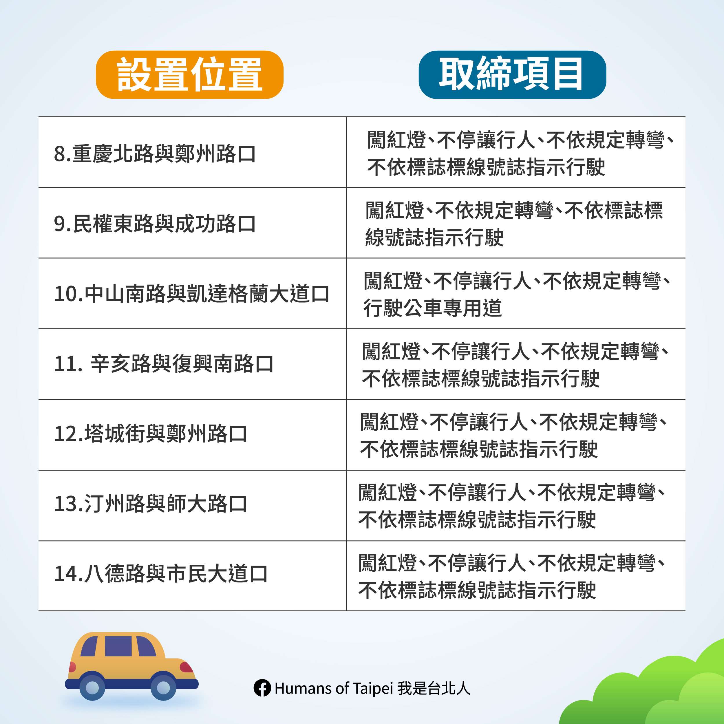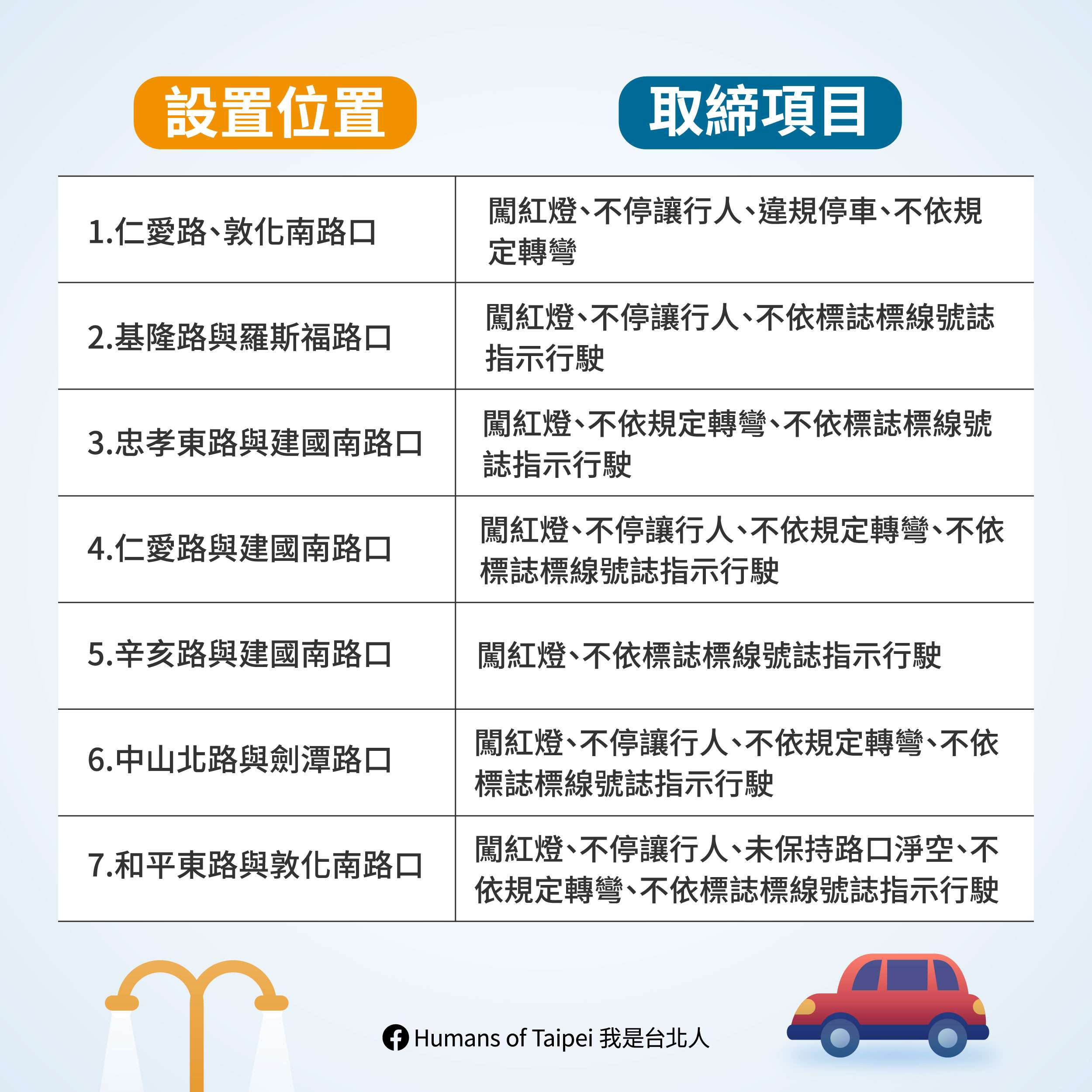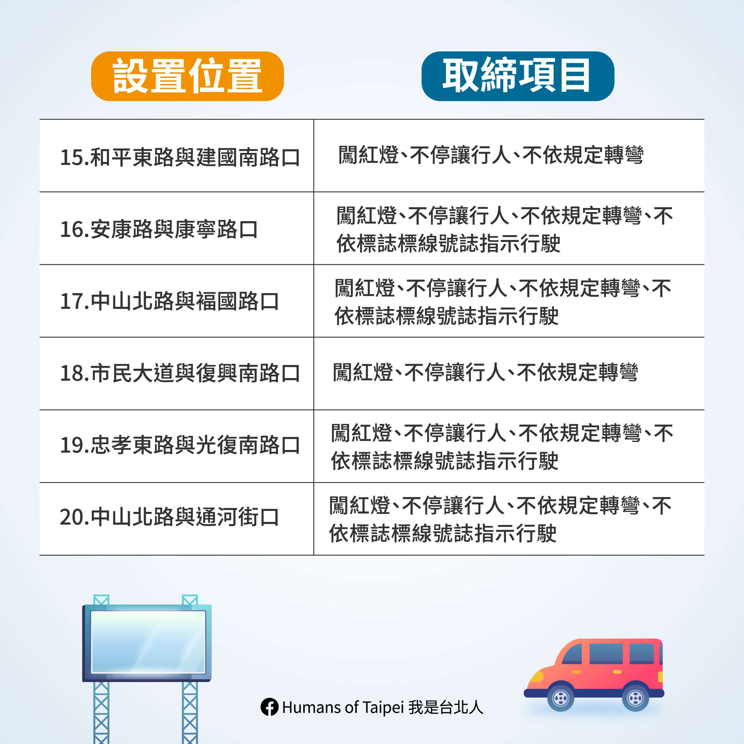臺北市10月1日起新增20處路口科技執法