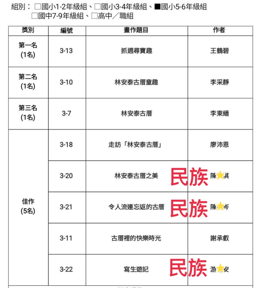 恭喜學生傑出表現,期許民族國小的孩子們都能在各自的領域發光發熱。