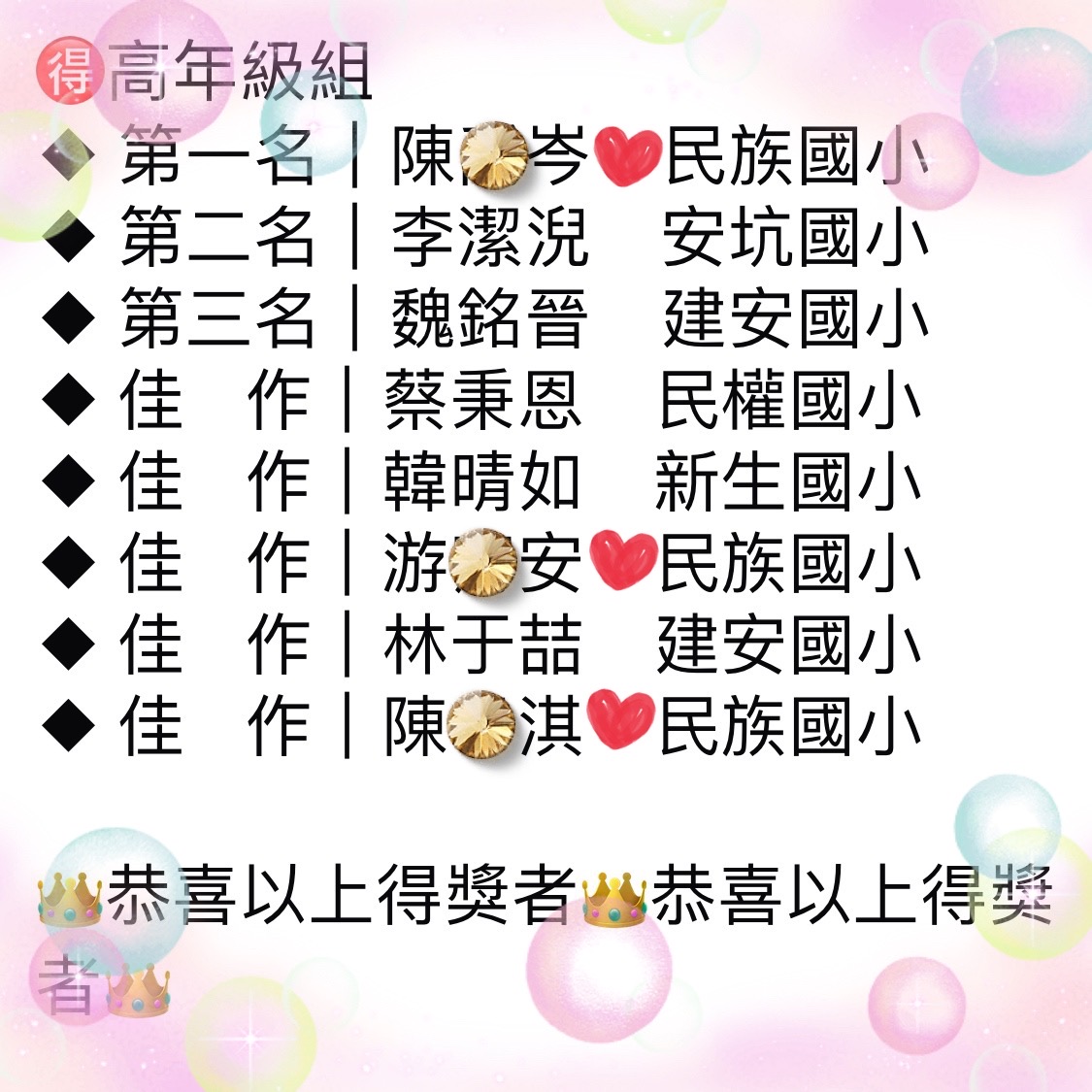 恭喜學生傑出表現,期許民族國小的孩子們都能在各自的領域發光發熱。