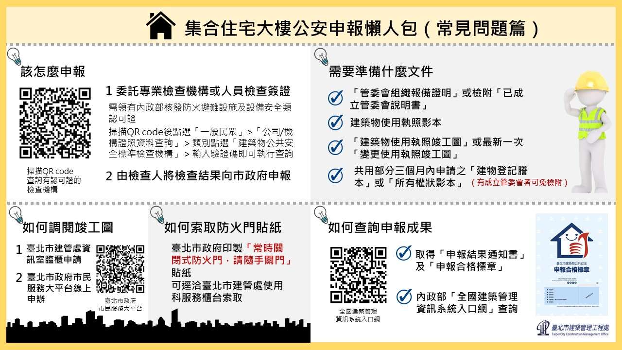 一、6樓以上住宅納入公安申報對象,應於114年完成申報作業,相關資訊請參閱https://reurl.cc/vpMv6N,請民眾注意自家是否完成申報,以免受罰!